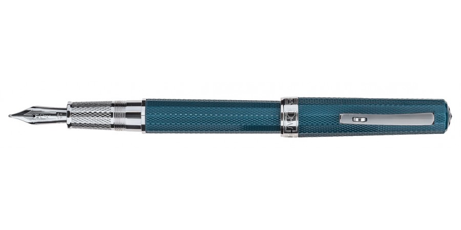 Realizzata in Resina di Cotone Navy Blue e Teal Green, la collezione Arte Italiana ART è impreziosita da una raffinata lavorazione guillochè a grana di riso e lavorata a mano che, per la primisima volta, si estende finemente anche al porta-pennino della stilografica e al puntale della penna a sfera (o portamine).