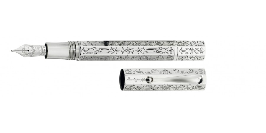 La sezione ottagonale, tipica del brand Montegrappa, caratterizza diverse collezioni di penne moderne pregiate, ma pochi sanno che la sua origine risale al 1915. Tra i primi modelli prodotti a Bassano del Grappa, la Reminiscence ritorna alla ribalta grazie all'edizione super-limitata prodotta in occasione del 105° anniversario della famosa casa di penne. Realizzato interamente in argento massiccio, il lucente corpo di questa eccezionale stilografica a stantuffo è inciso a bulino con un motivo Liberty.