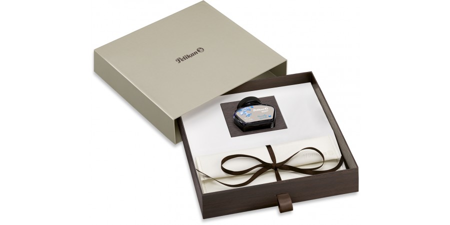 La Stilografica M205 Blue Marble è corredata da flacone d’inchiostro Blu Royal da 62,5 ml e pochette portapenna.