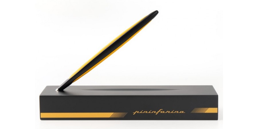 Scocca in alluminio e inserti in gomma colorata, disponibile sia nella versione a sfera che con punta in Ethergraf. Pininfarina Cambiano, primo stilo e icona del progetto Pininfarina Segno, personalizzata in perfetto stile racing con cofanetto in legno verniciato nero e finiture colorate, realizzate completamente a mano. Un prodotto perfetto per gli amanti dello sport che vuole testimoniare l'esclusività e la qualità del made in Italy con grinta.